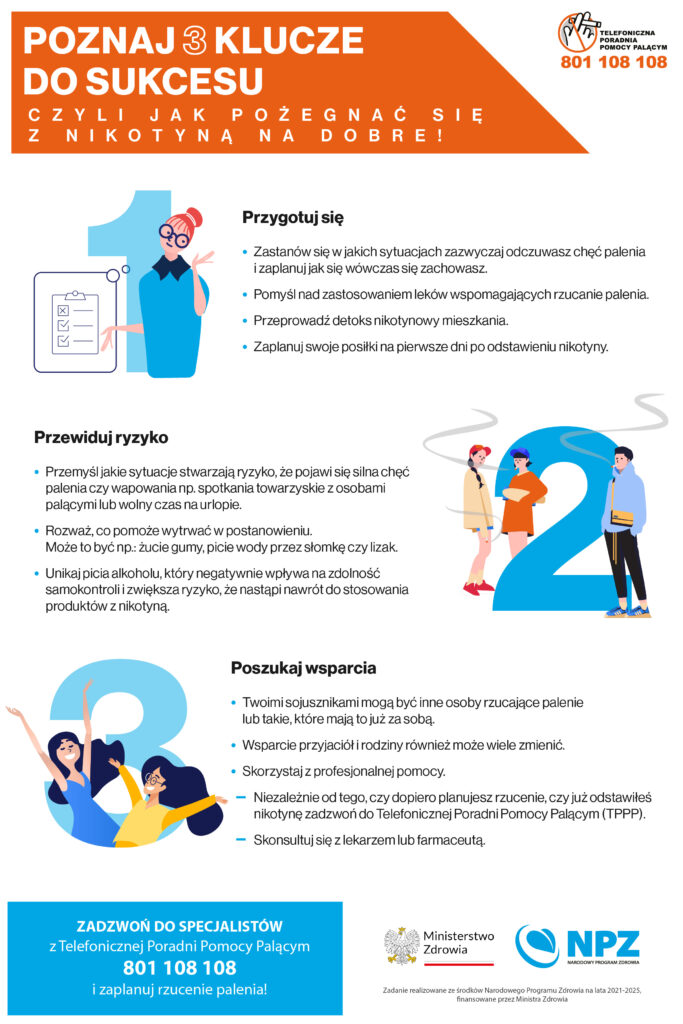 Poproś o wsparcie bliskich. Wyjaśnij, przez co przechodzisz, i powiedz im, jak mogą Ci pomóc. Możesz też zachęcić ich do przeczytania wskazówek na stronie 👉 jakrzucicpalenie.pl/chce-zeby-ktos-rzucil-palenie I. Przepiórka, M. Cedzyńska